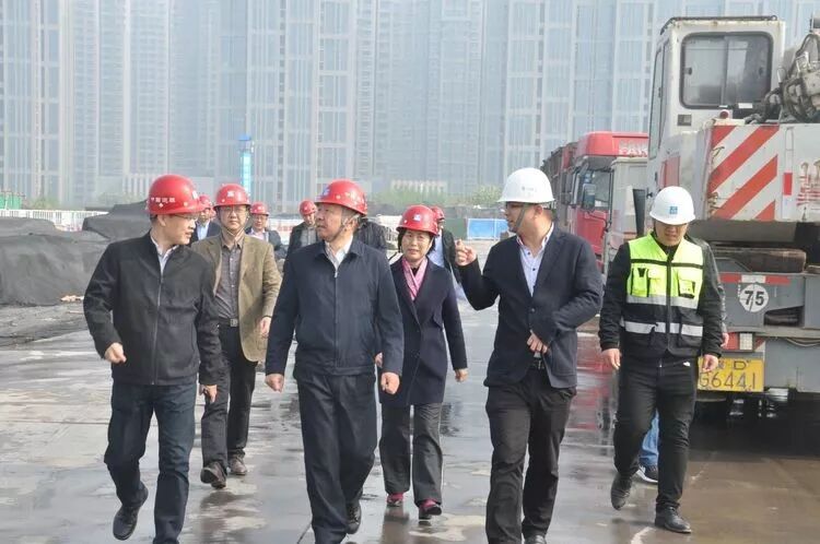 高建强副市长一行深入施工一线,对现场安全生产工作进行检查,交通枢纽公司总经理董艾君就现场安全防护措施、定期开展安全检查情况进行详细介绍,高建强予以充分肯定。